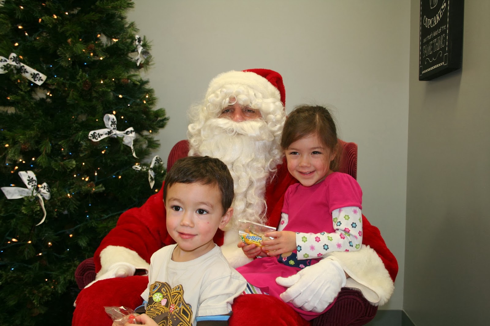 Claire is always at ease around Santa. Tyler likes to keep his distance.